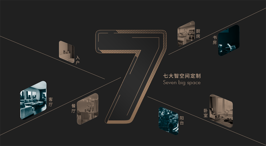 七大智空間:融入智能產(chǎn)品,實現(xiàn)入戶、客餐廳、臥室、廚房、陽臺、書房、兒童房七大智空間定制。